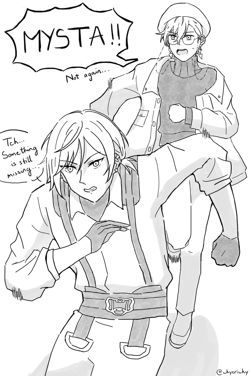 He would run around a lot searching for evidence, and Ike would often chase after him #MystArt #Ikenography twitter.com/whyeriwhy/stat…