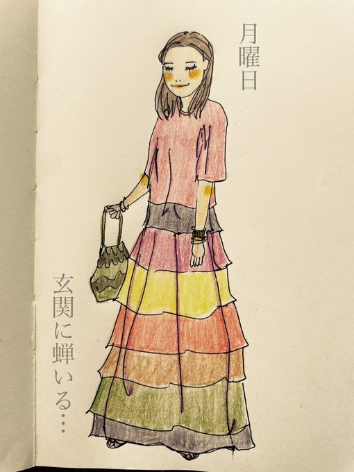 0 4 暑い #イラスト #色鉛筆 #派手スカート♡ 22/07/03 06:46