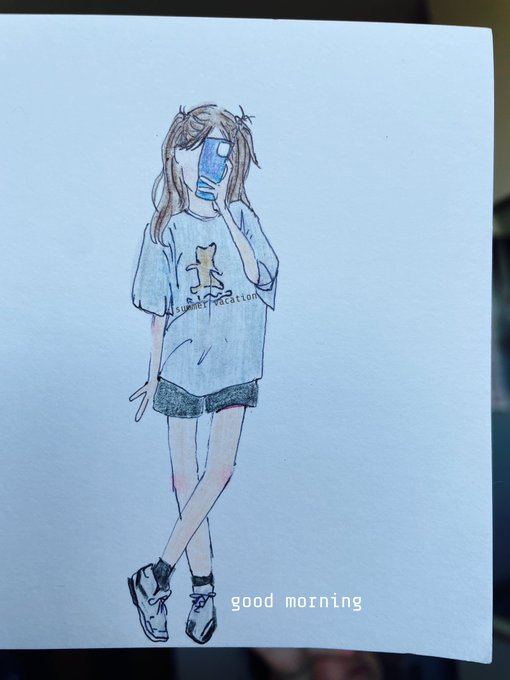 1 14 おはようです #art #イラスト #drawing #illustration #落書き #色鉛筆 22/08/06 06:53