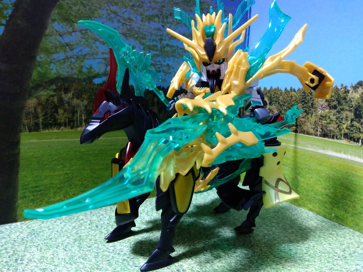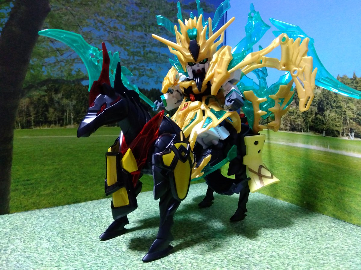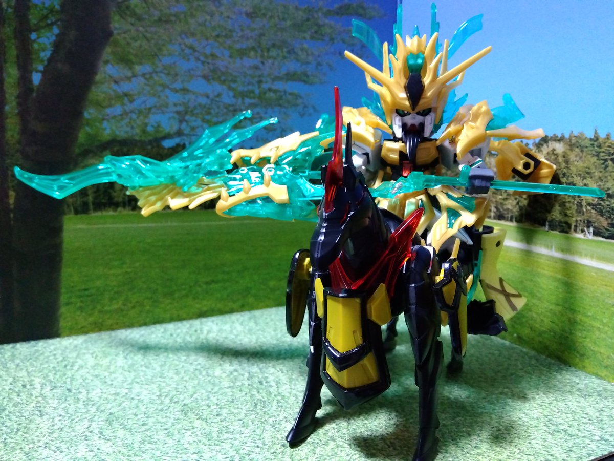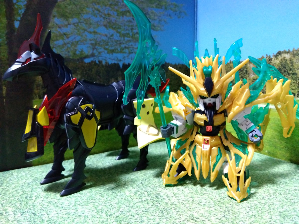 武聖関羽雲長νガンダムと装甲追加した軍馬 関羽はお馬さんに乗せないとね 青龍偃月刀・至極は迫力あるしデカイ #ガンプラの画像貼るとRTされると聞いて #ガンプラ改造 #SDガンダムワールドヒーローズ