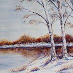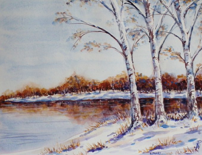 For Day 19 #ArtAdventCalendar here's a memory of the lakes on a winter's day 🎄🎨 #ArtistOnTwitter #Advent #AdventCalendar #painting #watercolor #Watercolourpainting #nature #artshare #Monday #WINTER #December #Christmas