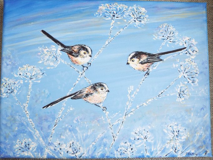 Here's a frosty painting of long-tailed tits for a very cold #WildlifeWednesday 🥰🐦🌨️❄️☃️#art #artist #ArtistOnTwitter #artshare #Wednesday #December #FeedTheBirds #birds #BirdsOfTwitter