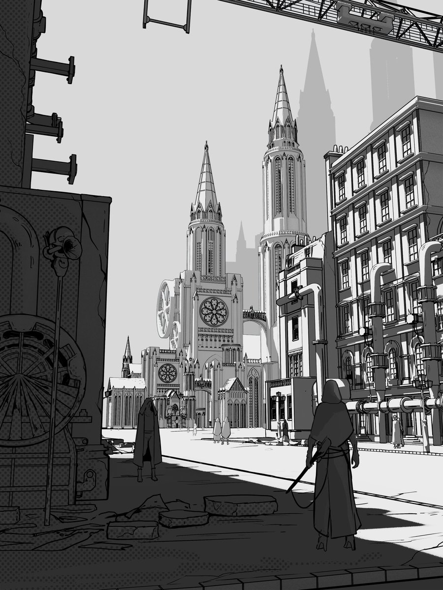 A little more about the empire’s structure ⚡️ It is built on the extraction of the holy mineral, which the entire industry, and all the weapons depend on. This mineral is the main resource of the church ⛪️ Btw, I added a small gramophone from the previous art. #inktober2022