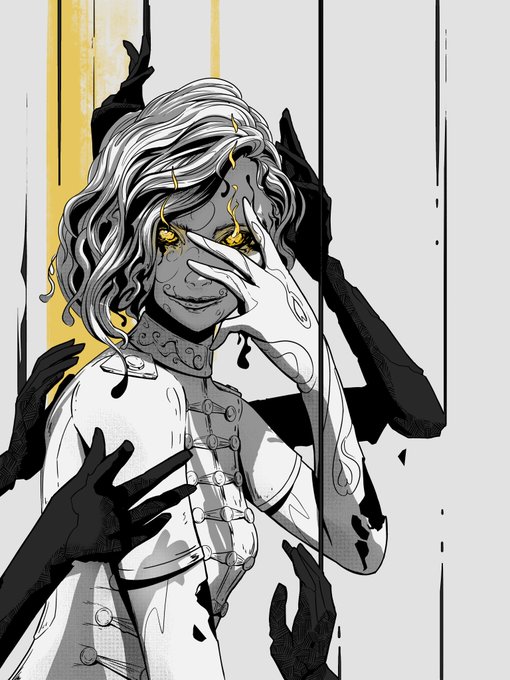 Aria, leader of the Lemnos gang, is ruthless to those who disagree with the rules and kind and caring to loyal comrades 😌 She was the first to feel the presence of God. It was at this time that her body parts began to disappear. #inkdrawing #inktober2022 #inktober