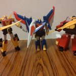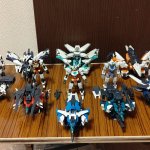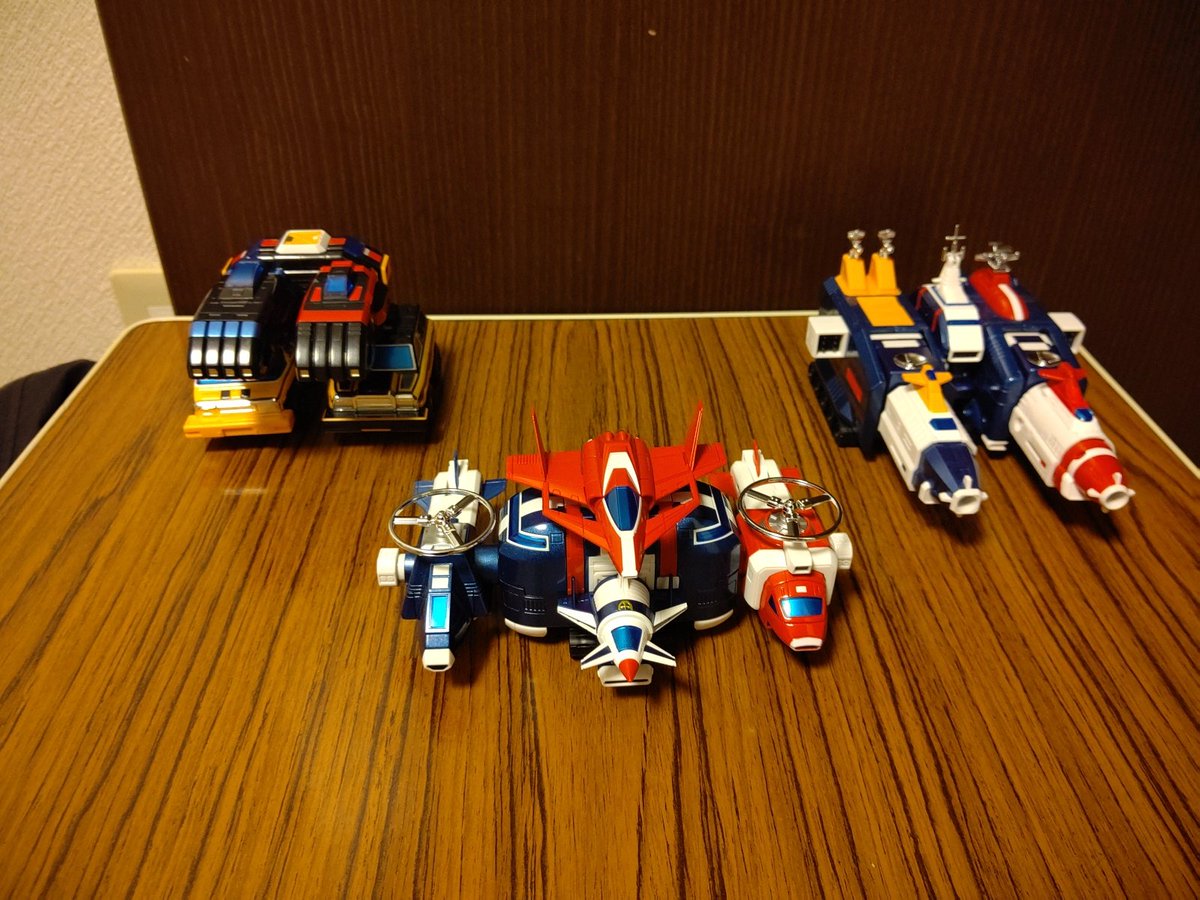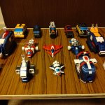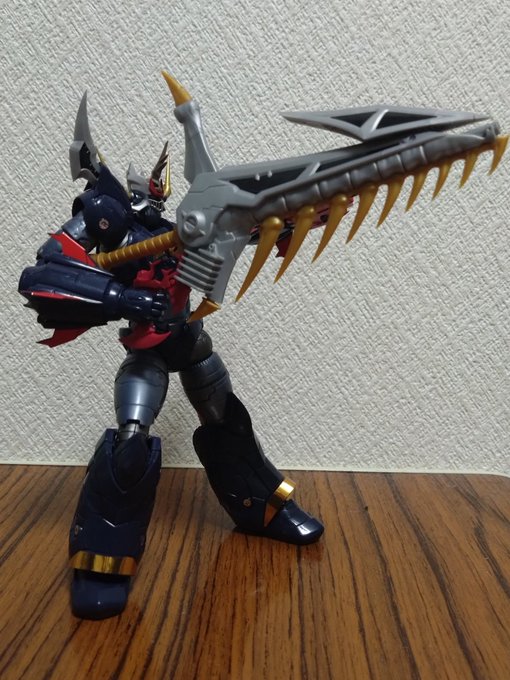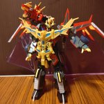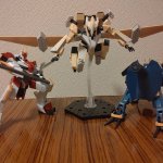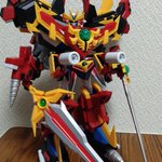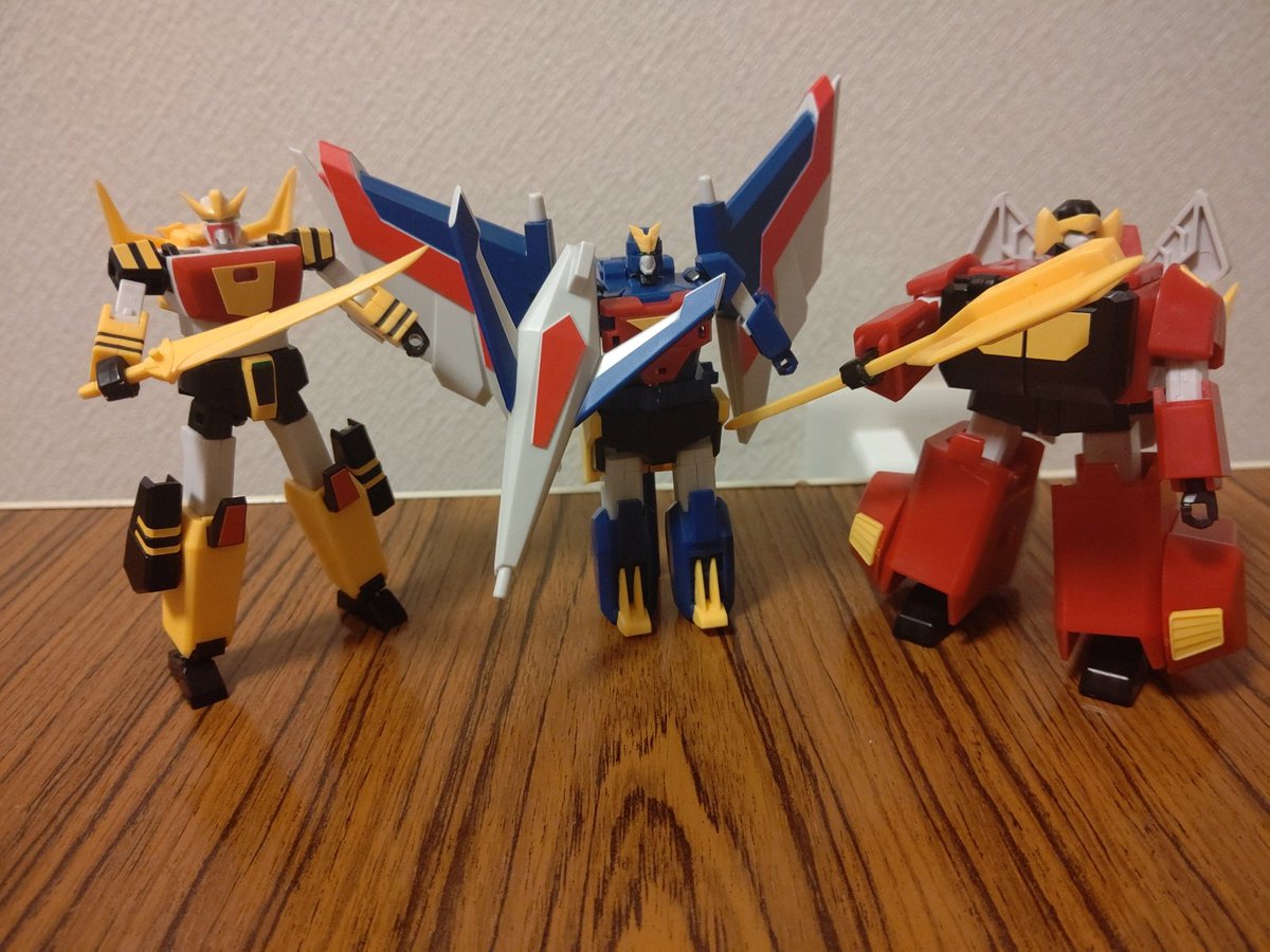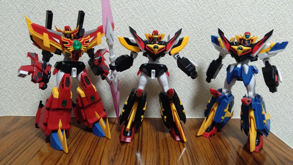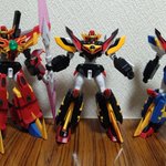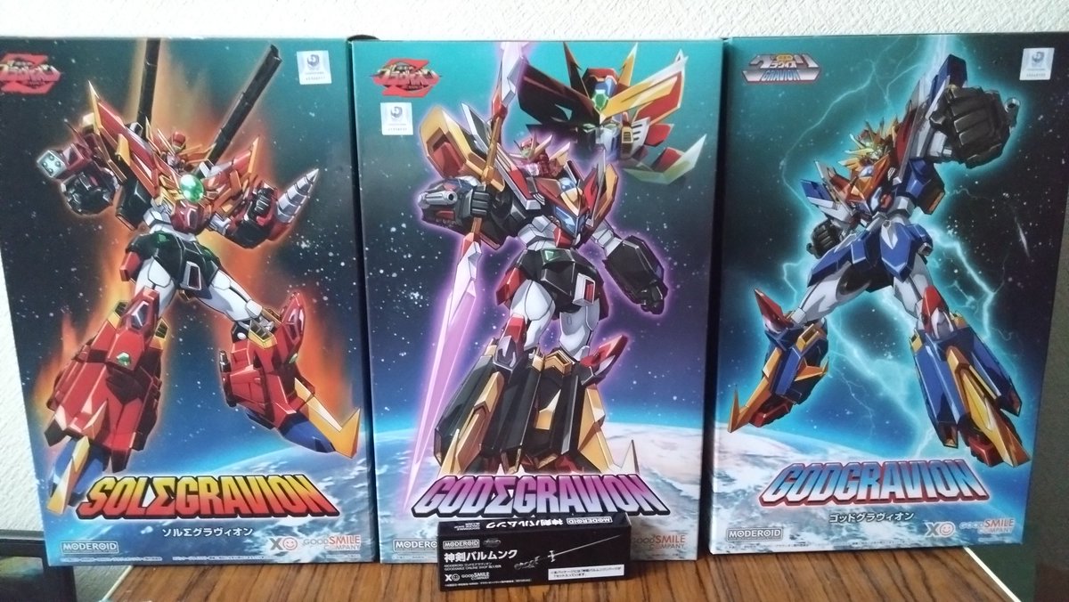 #夜のフィギュア撮影会 2/25 お題 『今月のベストオモ写』(既出) MODEROID超重神グラヴィオンシリーズの グラヴィオン3体揃い踏みそして アルティメットグラヴィオンをおいて 他に無し!! 大張正己監督のパッケージイラストも 最高!!
