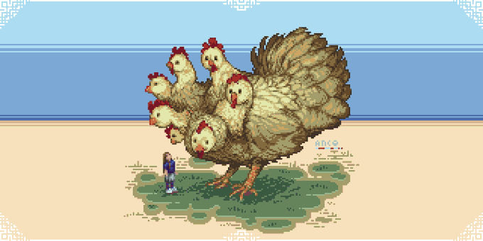 The third #pixelart doodle of the I Draw In Your Style project from last month! This time, I tried drawing Naomi in the colourful, chibi style supplied by @Alisuca3, using a palette well-represented in their work: my own #softcon33! 160px.sq./300% Source: twitter.com/Alisuca3/statu…