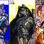The #pixelart I made for @batfeula's #fightingcollab~ Seicom, the Petrotheist. Makes the best cookies. Pals with the myriad spirits of prehistoric organisms reincarnated into oozy blobs of crude oil. Pumps her own gas. Has friends in low places. 330px.sq. each at 2xzoom. 10c+3.