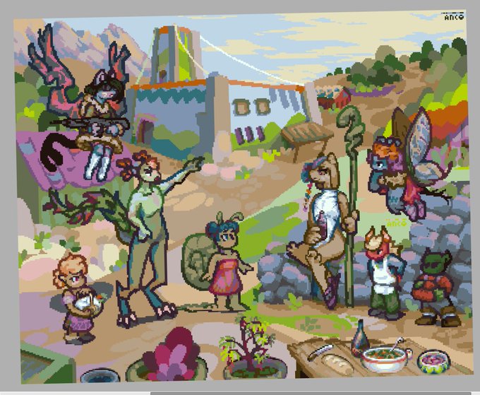 90% BIRTHDAY ART FOR THE BIRTHDAY DRAGON, @NorthernKiss_Vt! (Ten percent is for @reivercaptain, @kofuhara, and Corefitz, who does not seem to be on Twitter, to share. <3) Thanks for the invite! See you next year~ :D 256x224px. at 3xzoom. pal: #chaosmountain59 #aseprite #pixelart