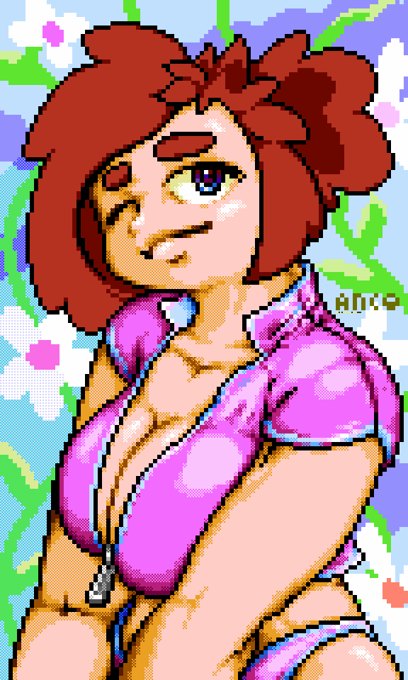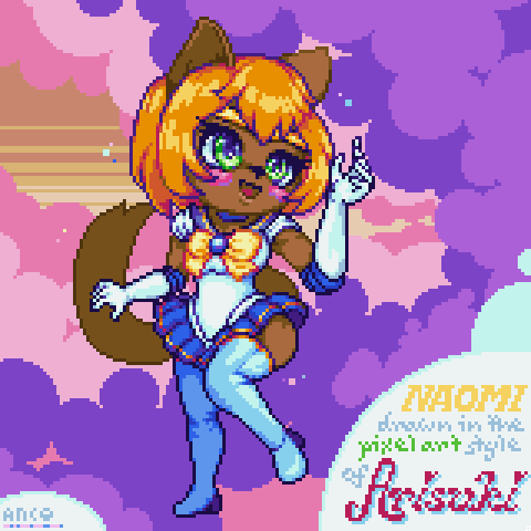 Finished my fifth #pixelart reverse-DTIYS study! This time I used @its_HiroHi's fantastic examples for my Naomi sketch! Super-pleased with how she came out~ The costume was particularly fun! Did the background in CSP, for the rulers. <w< HiroHi's sample: twitter.com/its_HiroHi/sta…~