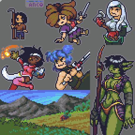 Finally laid out my entry for the #pixel_dailies #pdtactics collab! I rolled 2-4-4-6: Chaos-Lamia-L.Armour-Dual Blades, and drew this snake lady with a terminal case of Backpfeifengesicht~ Her name is Ymenia'arza. 48px.sq.ea.+layout at 3xzoom. 31+4+1c. @pixel_dailies #pixelart