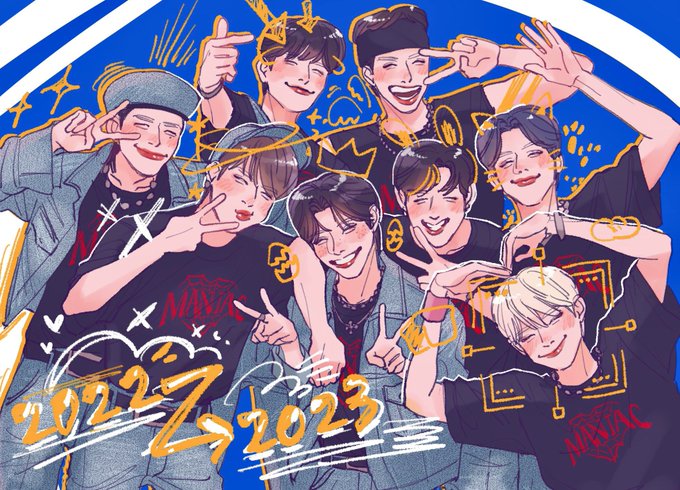 アカウント作って半年ですが2022年イラスト見てくださった方ありがとうございました🤝❤️🔥描き納め! #Straykidsfanart