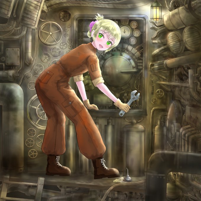 Mechanic girlーーメンテナンス中 medibang.com/picture/rd2210… #ARTstreet #MediBang #女の子 #可愛い #金髪 #2022年9月例コンテスト:働く人 #翠眼