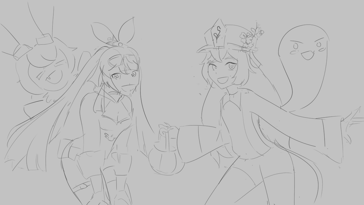 Hu Tao x Amber Finally was able to finish something, not just a wip. I'm so proud of this despite the inaccurate lighting and anatomy lol 😌😌:> I swapped their clothes, in case you're wondering. 🤔 #GenshinImpact #genshintwt #genshinimpactfanart #art #artph #Amber #HuTao
