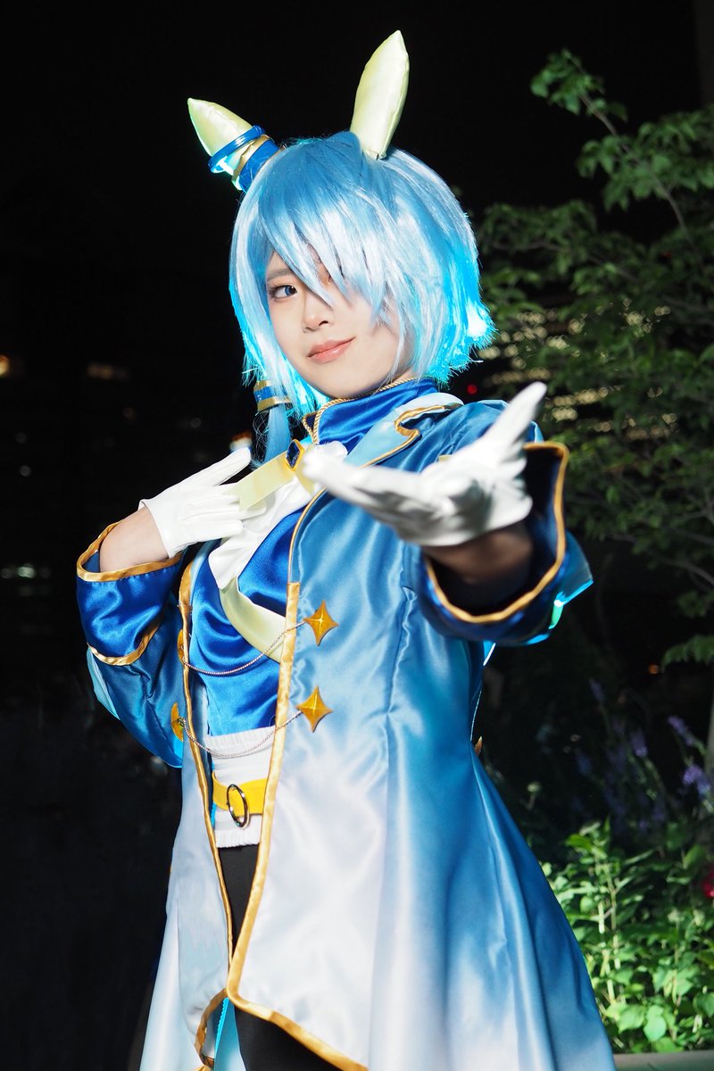 29 73 【コスプレ】 ウマ娘・ケイエスミラクル(勝負服) 綺麗に撮ってもらいました!! ジャケットのリボンが脇に隠れる不覚…😭 📸→キョンPさん(@butano_hara) #夜アコ #アコスタ池袋 23/05/13 21:37