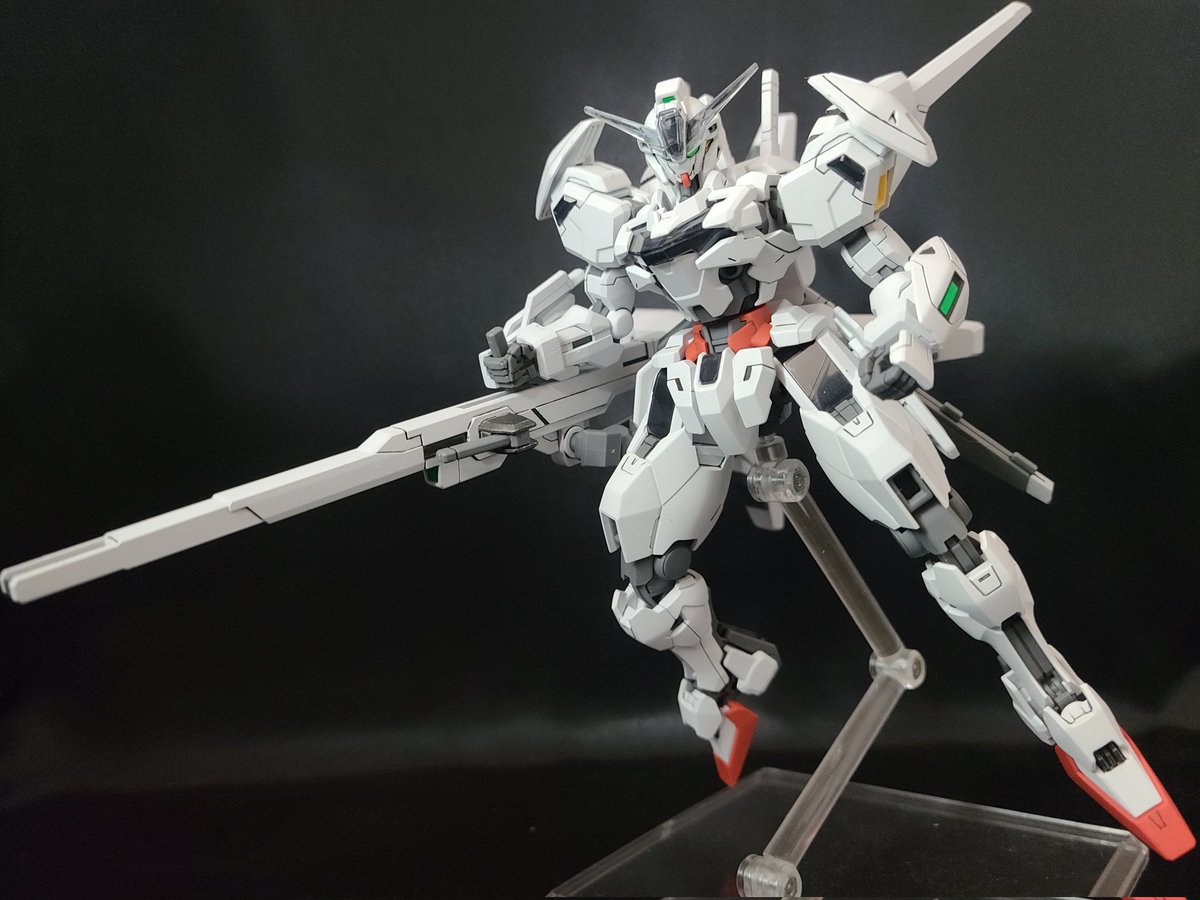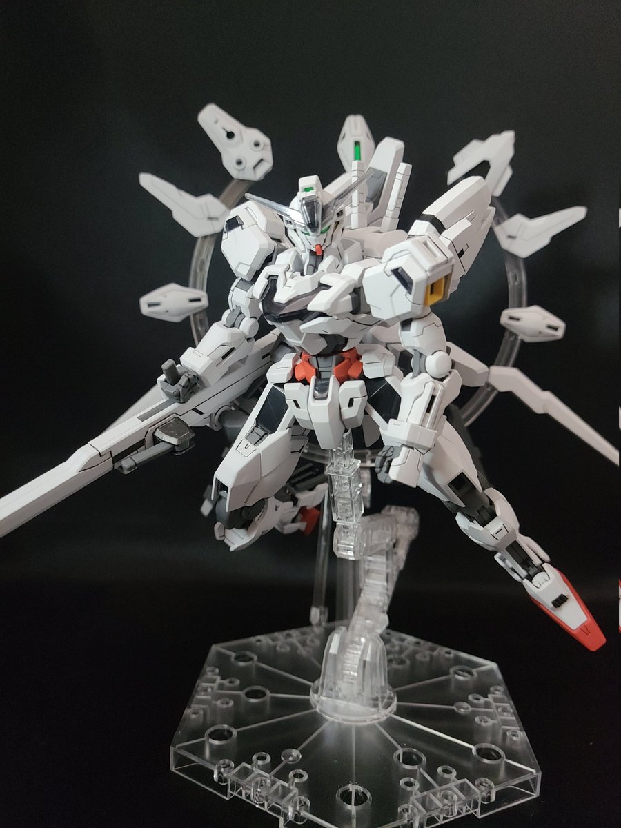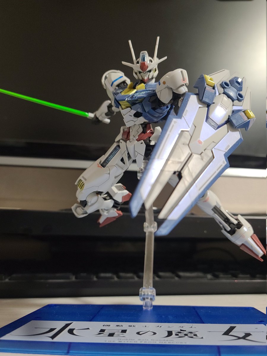 #水星の魔女俺達の完結祭 10分くらい前にやっと完成💦 ガンダムエアリアル パーメットスコア・シックス で参加させて頂きます✨ せっかく付属してるラメパーツを蛍光クリアにて塗装❗ ボディはガラスパール使って全体的にラメ感をプラスしてます🎵 「よかった…、いたんだ」 #ガンプラ #水星の魔女