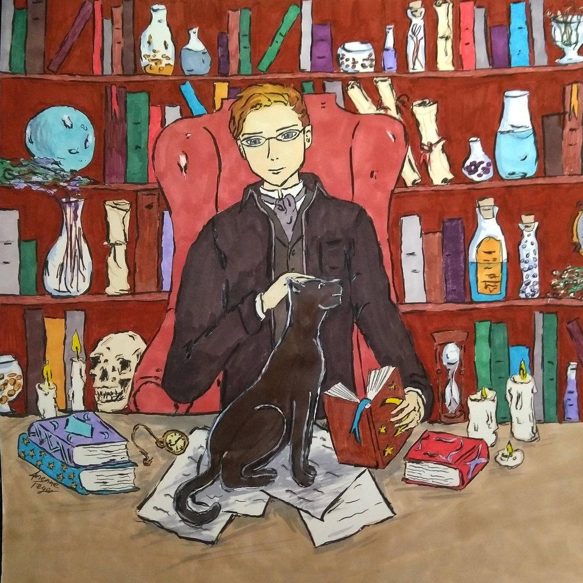 #Inktober week 3's art is done!Here Julian & his cat Luna (from my book) are featured in my theme: black cats & witch/sorcerer. I did more of an esoteric/alchemic take to play up his background from my story. #inktoberday20 #inktoberart #blackcat #traditionaldrawing