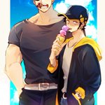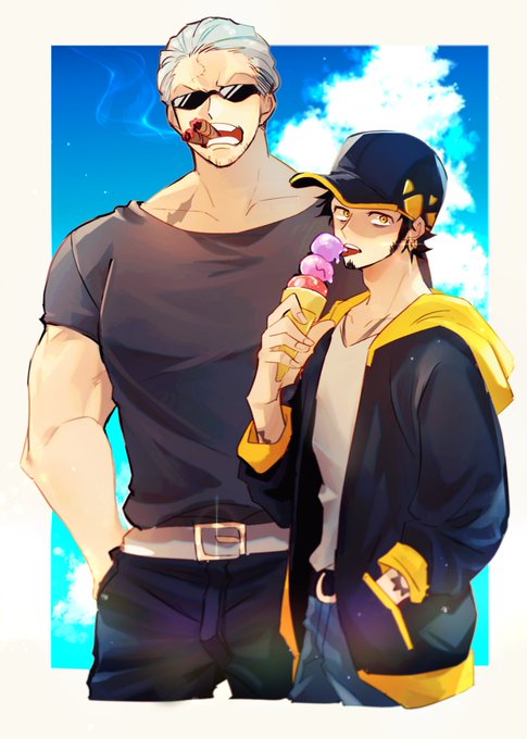 【🟥🏴☠️】ハイチーズ! 複数人を一枚に書くの苦手すぎてね…ビッグラブメンツで練習です😂 柄シャツらいくんのお行儀の悪さを叱ってるやそ😂