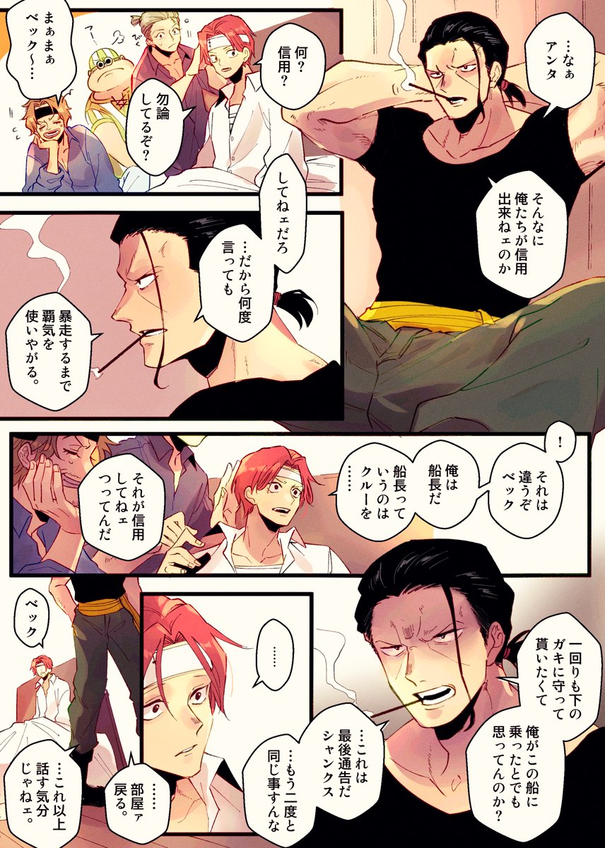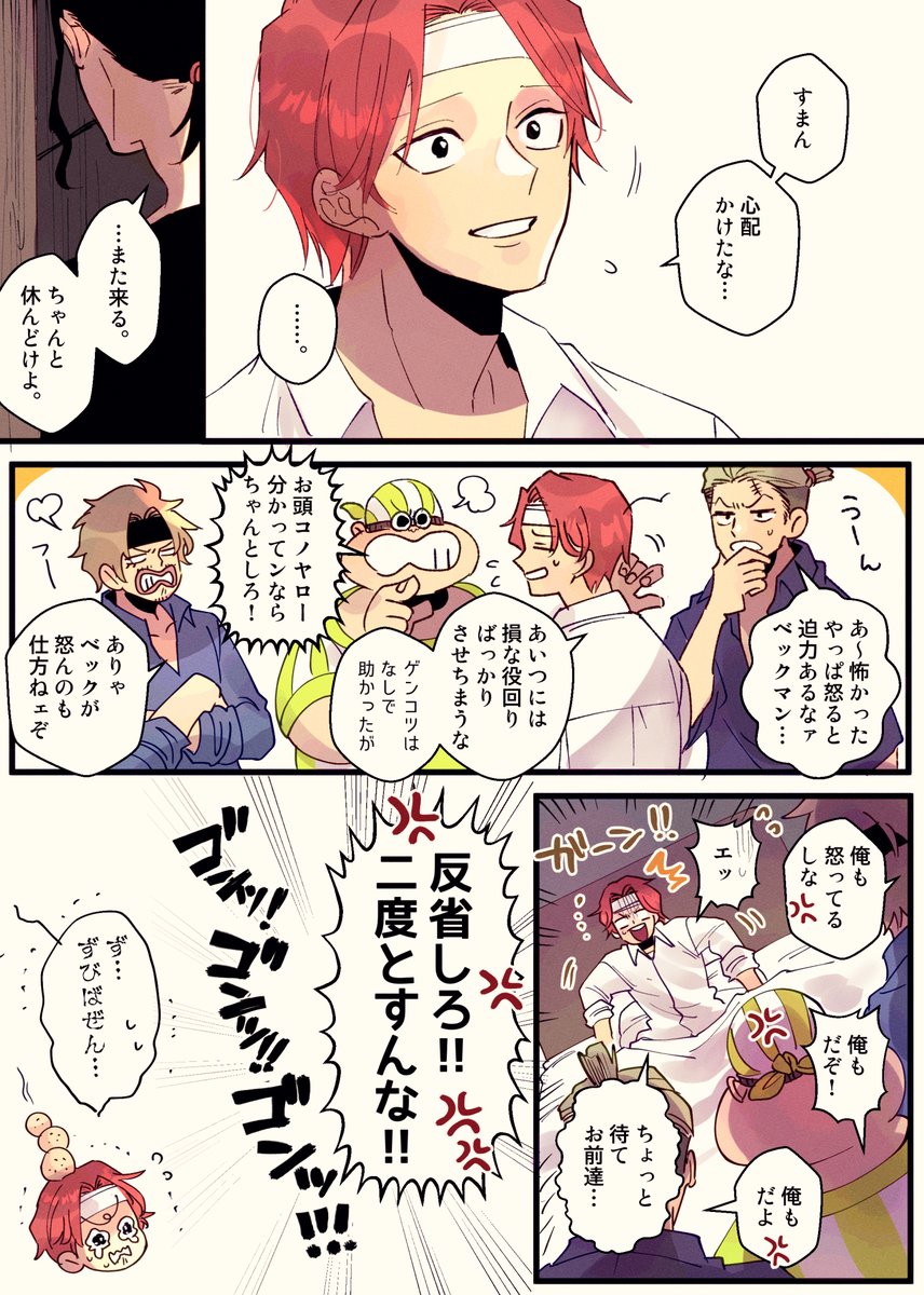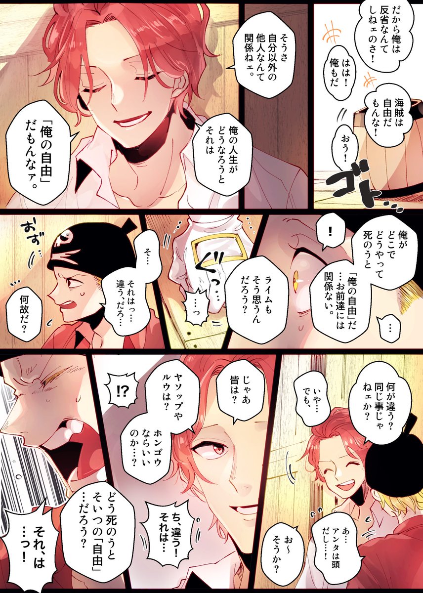 【🟥🏴☠️】「覇気で未来みまくりすぎて暴走なったりして(タイトル)」 いんく妄想的な初期メンバーです😇 シャンは船長としてみんな守ろうとしてるけど、みんなだって船長守りたいんだよ… みんながみんなを大好きな🏴☠️☺️