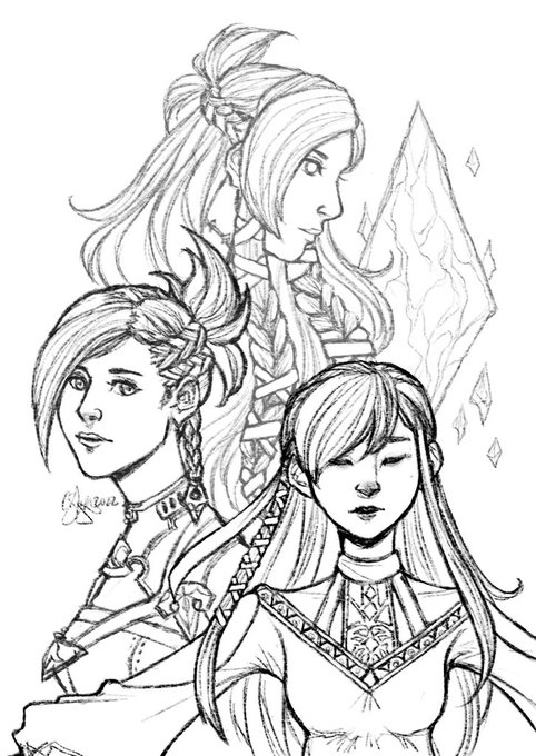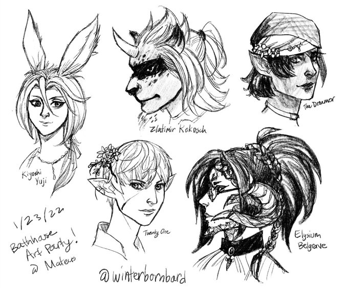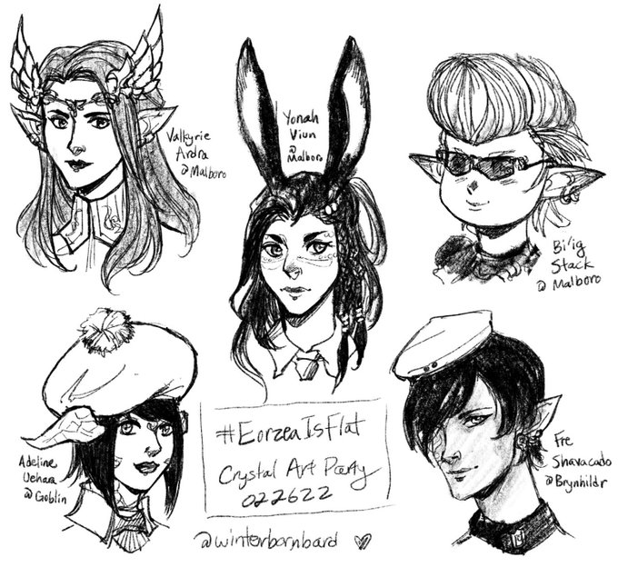 My humble sketches of some lovely folks at the #EorzeaIsFlat art party! I was feeling the spirit of Valentione in that void tonight for sure. 😆💕 #CrystalArtParty #ffxivart