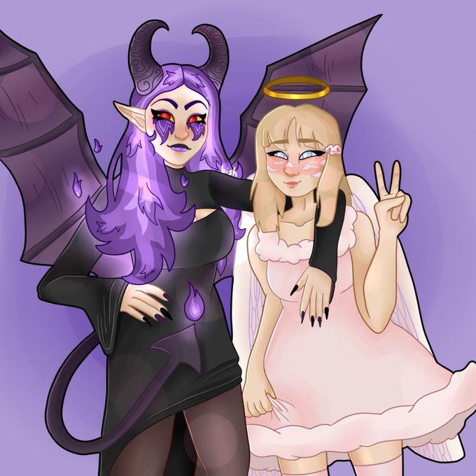 (RTs appreciated <3) i had the idea of drawing both of them as a demon and an angel for a while so i made my own designs, fire hair for minx because of her fiery personality-- @Nihaachu #nihachufanart @JustaMinx @MinxMore