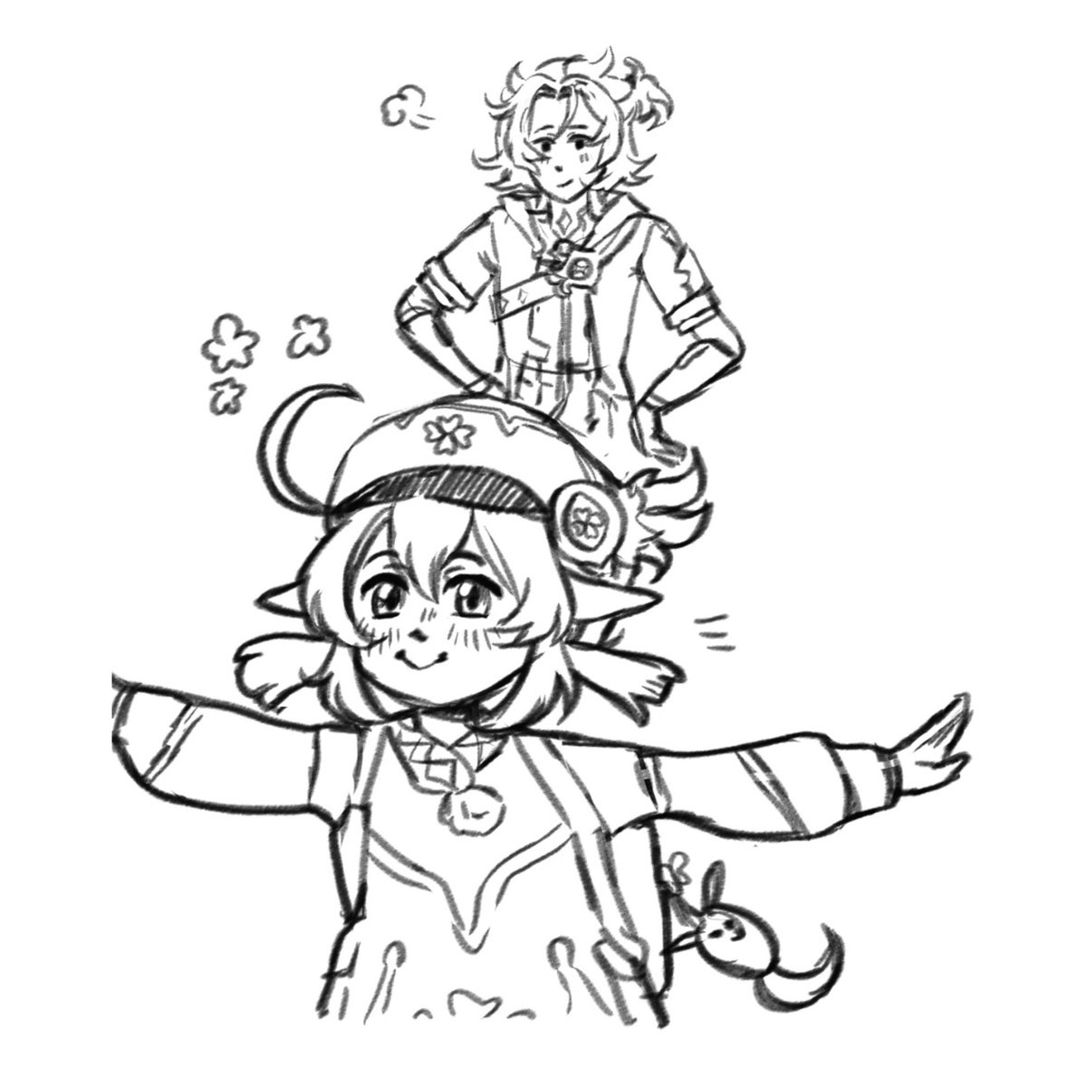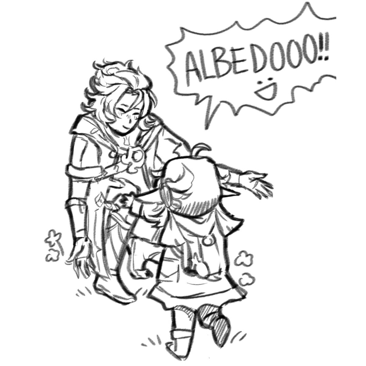 1/2 silly little comic abt klee just being a kid™ and albedo having to deal w it bc hes her big bro #genshinimpactfanart