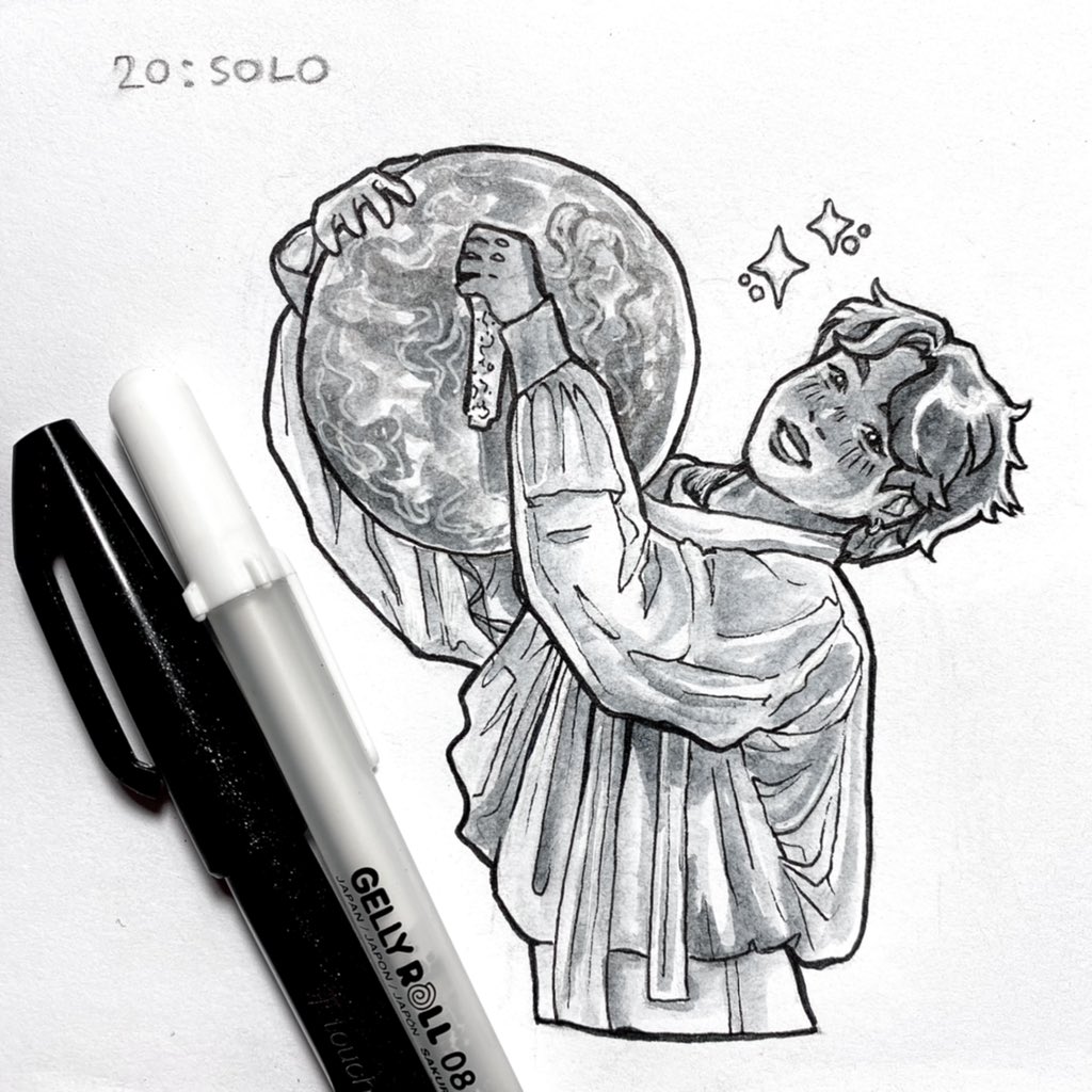 day 20 of #kpopinktober: solo! moon is such an amazing song and the concert stage was so cute so i drew that :) #btsfanart | @BTS_twt