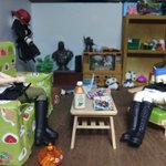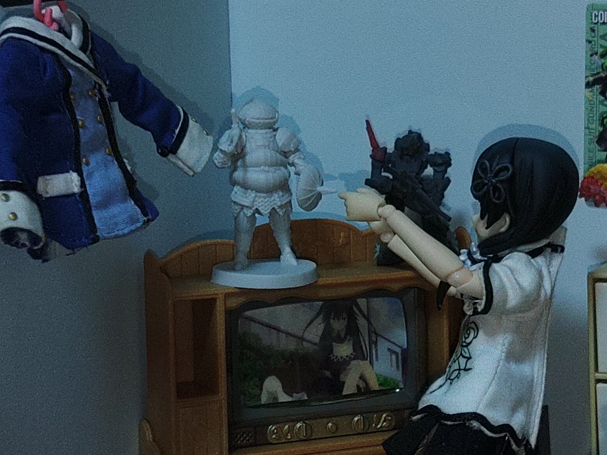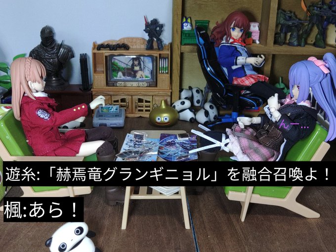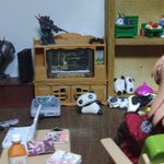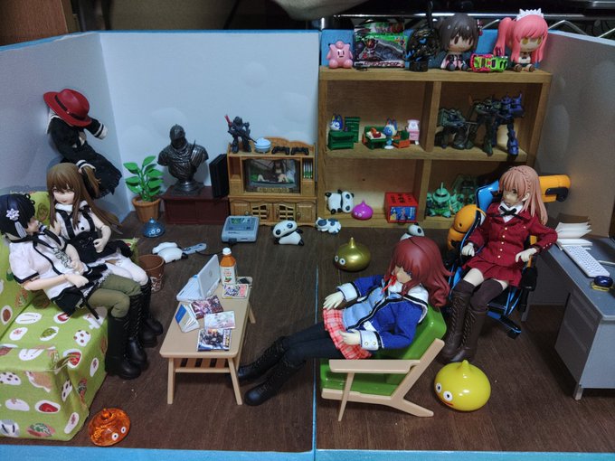 6 34 ドール用に作った部屋、ソファ前のテーブルには常に漫画が置かれており、テレビとゲームも備え付き、あとスライムとたれぱんだが生息している #アサルトリリィドール部 22/06/14 15:30