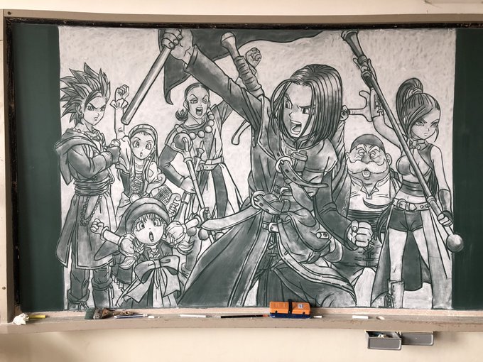 ドラゴンクエストの誕生に最大の祝福と賛辞を! 過去絵ですが再掲させてください!新しいの描きたかったけど時間がなかった💦 #レトロコンシューマー愛好会イラスト部 #ドラクエの日 #黒板アート
