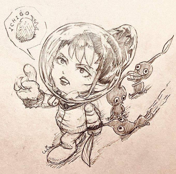 15 203 ピクミン3オリマーのトコで 高いとこのイチゴみつけたあたり 上向いた時に開いてた口が なんかかわいかったから #お花畑青空大写生大会 23/07/12 22:45