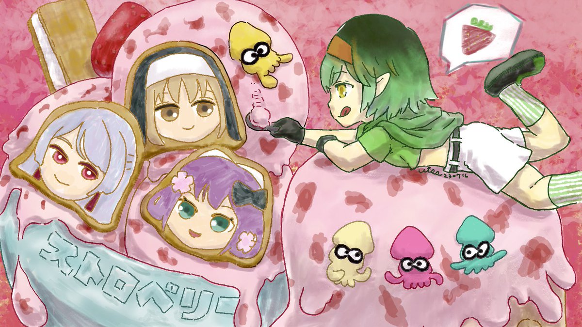 26 124 スプラ3 アイスクリームフェス! ストロベリー! #お花畑青空大写生大会 #描いたよクレアさん #上弦画 #リツキあーと 23/07/16 21:57