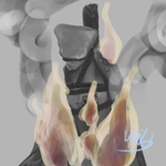 0 1 第五天 題目 FLAME 第一時間想到的是,前幾天看到有人在語音內被包圍問問題,感覺像是巫女審判,燒毀! #inktober2022 #flame 22/10/05 22:47