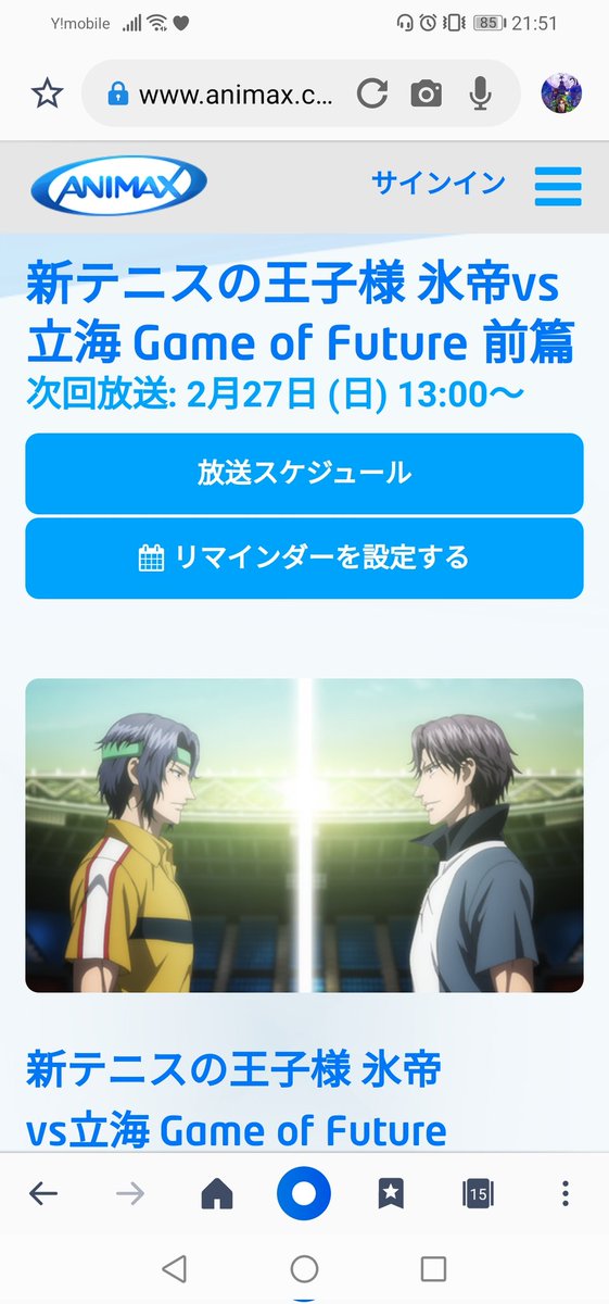 306 999 テニプリクラスタのみんなー! 2月27日13時からANIMAXでテニスの王子様氷帝VS立海やるよー! #テニプリ 22/02/15 21:52