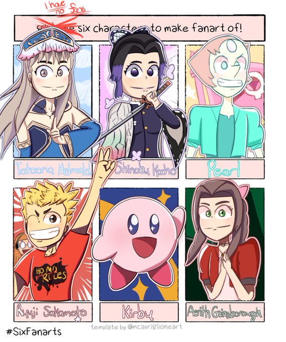 Would've drawn Zelda instead of Kirby, but I got lazy! I'll try to draw Zelda another day 👀💦 #SixFanarts #SixFanartsChallenge #sixfanart #sixfanartchallenge #Fanarts #fanart #Persona5 #FF7 #Kime #AtelierRyza #StevenUniverse #Kirby