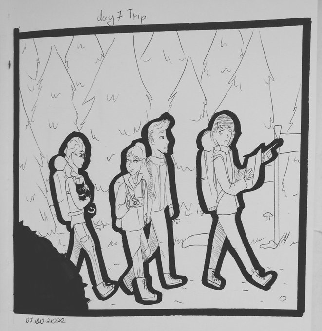 Hey guys! Here is day 7 for @inktober, in about an hour it will be today. I had a lot of fun creating it and I'm proud of it 😊 ~wixobemk #inktober #inktober2022 #day7 #day7trip #trip #cat #inkwork #pencilart #oc #forest #pensildrawing #inktober2022day7 #inktober2022day7trip