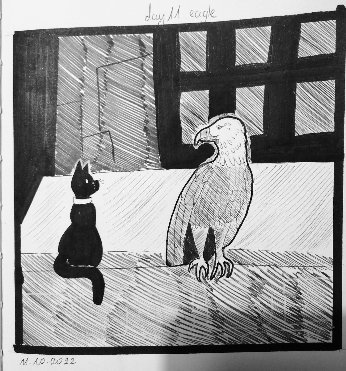 Day 11 Eagle Hey guys! I can't draw birds so I hope the eagle looks like a eagle ~wixobemk #inktober #inktober2022 #day11 #inktober2022day11 #inktober2022day11eagle #eagle #bird #cat #roof #ink #inkwork #pensildrawing #pencilart #inkart #pendrawing #traditionalart #penwork