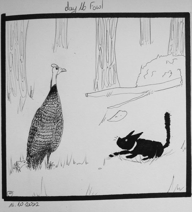 Day 16 fowl Hello guys! I started to wonder why there are so many animal themes in this year's Inktober. I can't draw animals, especially birds ~wixobemk #inktober #inktober2022 #inktober2022day16 #inktober2022day16fowl #cat #pensildrawing #pencilart #traditionalart #fowl #inkart