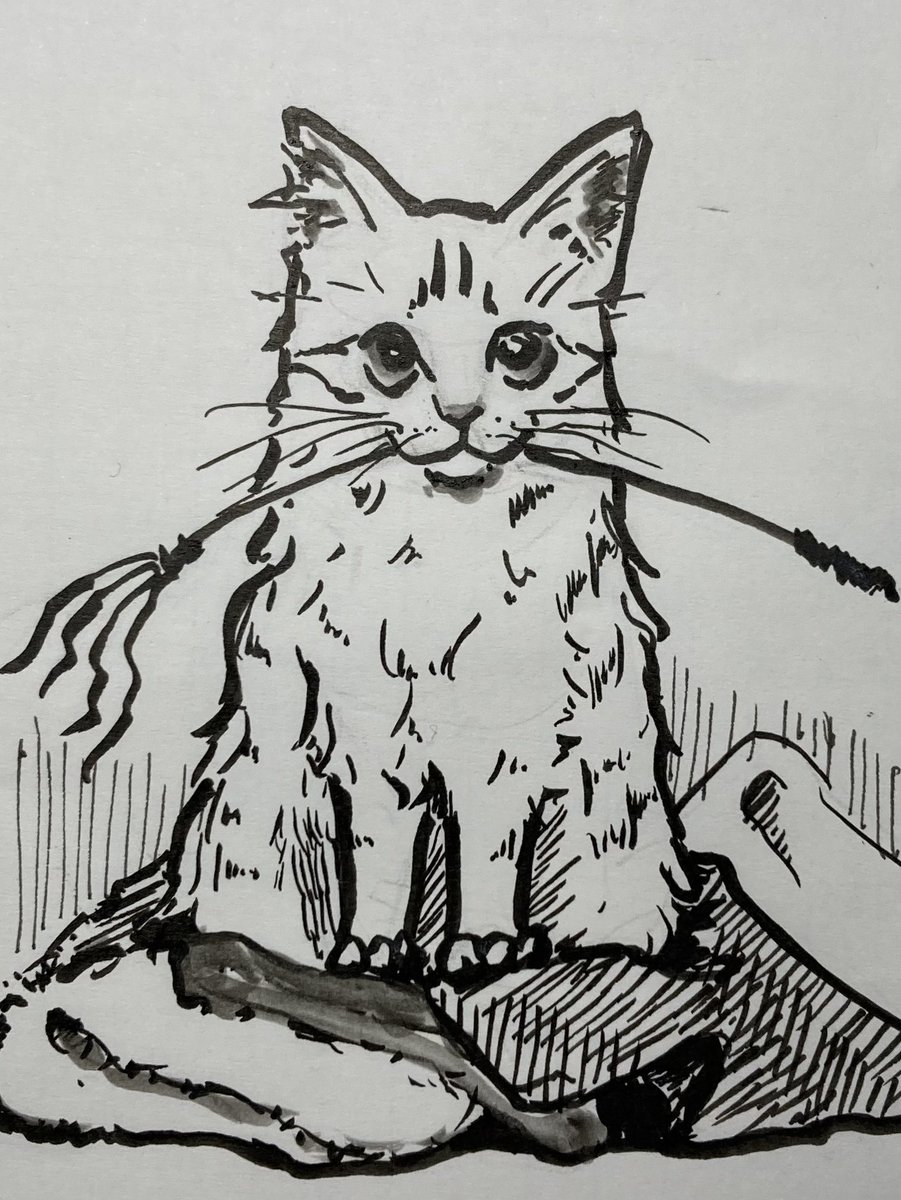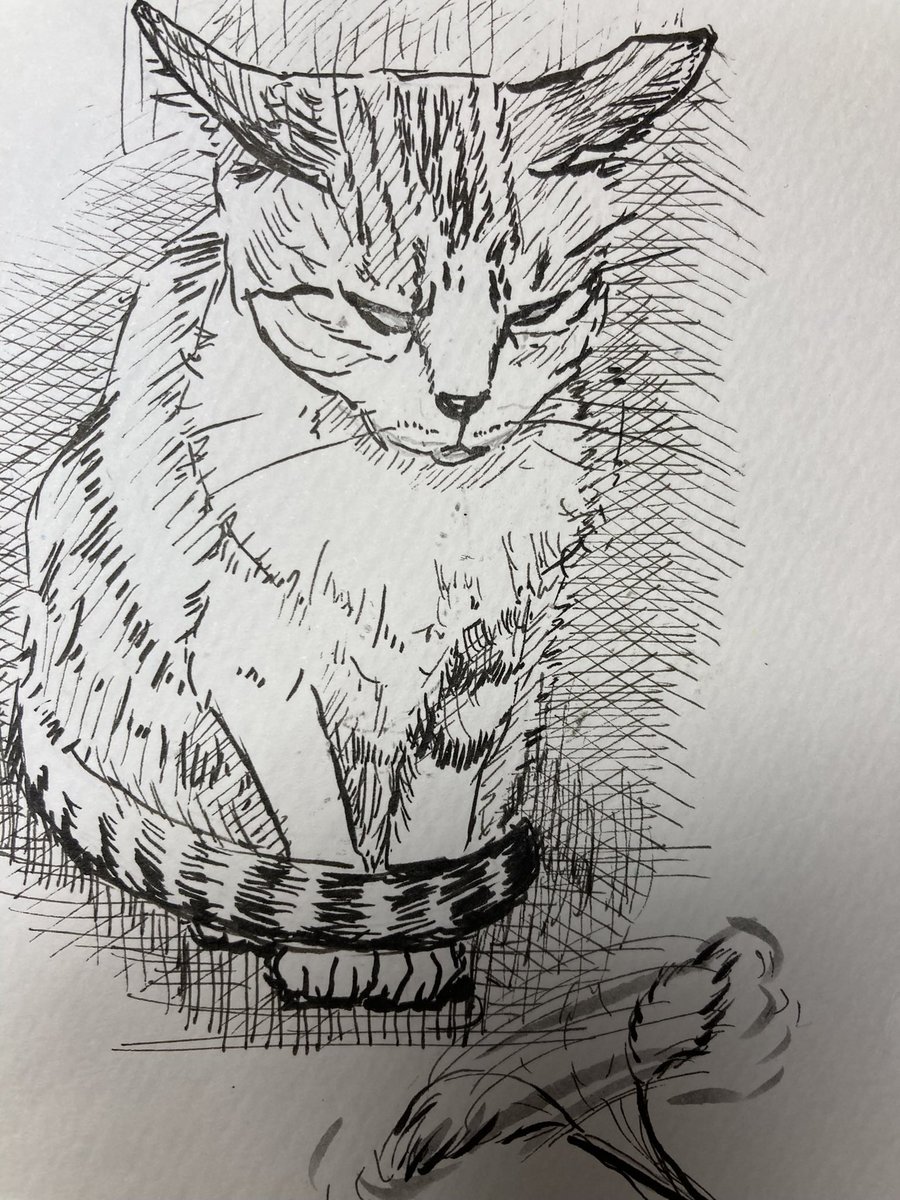 #インクトーバー EGO 私が遊びたいからあなたももちろん遊ぶよね? な猫さん。 難しい、、 #inktober #inktober2022 #kuretake_inktober2022 #kuretake_inktober #cat #猫