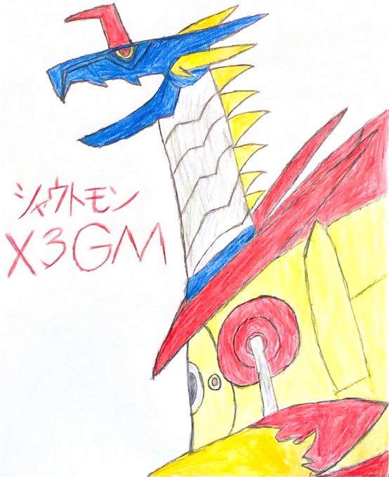 #デジモンクロスウォーズ #デジモン #Digimon ゲーム版限定のデジクロスであり、 シャウトモンのデジクロスの中で 1番好きなデジモンでもある シャウトモンX3GMを描きました‼️😄 X3GM、アニメにも 出してほしかったなぁ...。😓 ...あとしつこいくらい言うけど、 コイツの公式図鑑登録はまだですか?😭