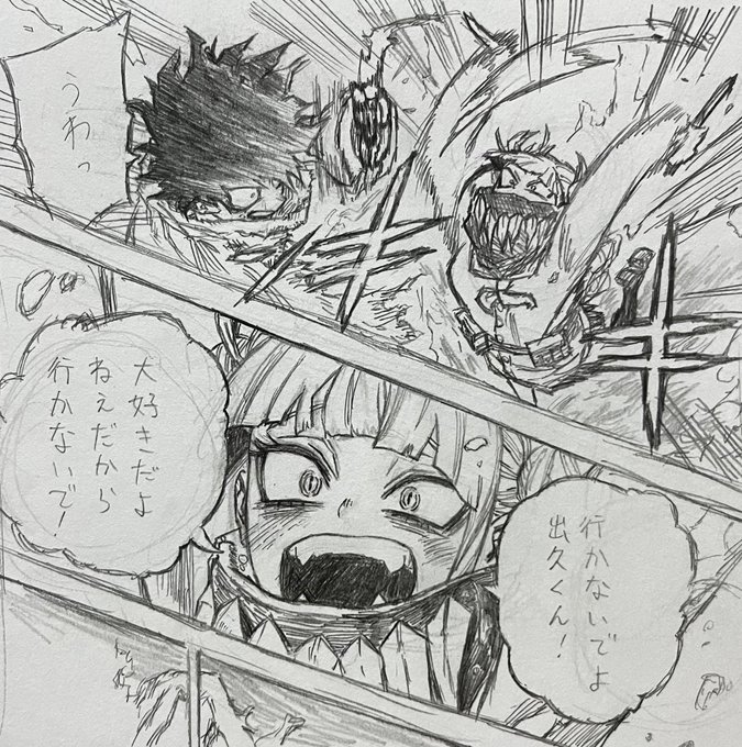 【 本誌ネタバレ注意 】 「 交わるよ 無理にでも だから 止まってくれ 」 #ヒロアカ #模写 #一発描き