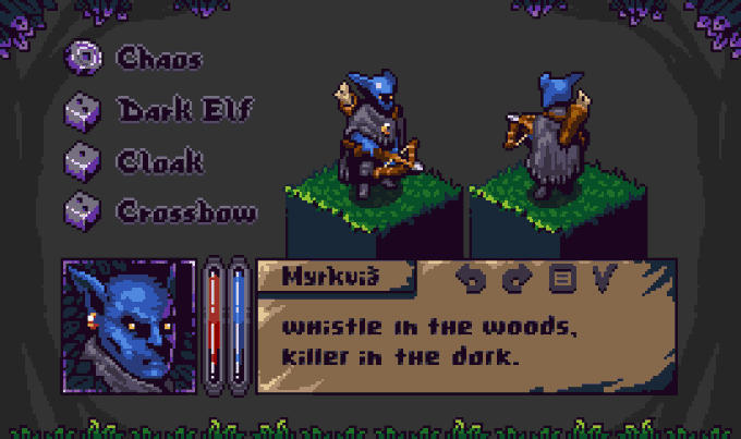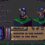 Myrkvid. Dark elf from Chaos faction. He wears a cloak to cover in foliage from where he can track and kill his pray, apparently... "Whistle in the woods, killer in the dark". ___ @Pixel_Dailies #pdtactics #pixel_dailies #pixelart #ドット絵 #fantasy #elf #darkelf