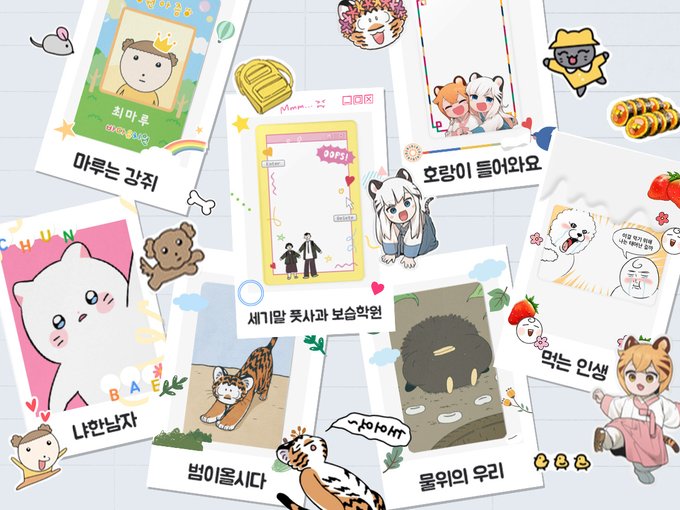 네이버 웹툰 프렌즈에서 여러 웹툰들과 굿즈 기획전이 열렸습니다~ 아래 링크에서 다양한 굿즈와 평소 관심있던 웹툰들이 있는지 확인해보시길 추천드립니다 :D webtoonfriends.marpple.shop/kr/tigeriscomi…