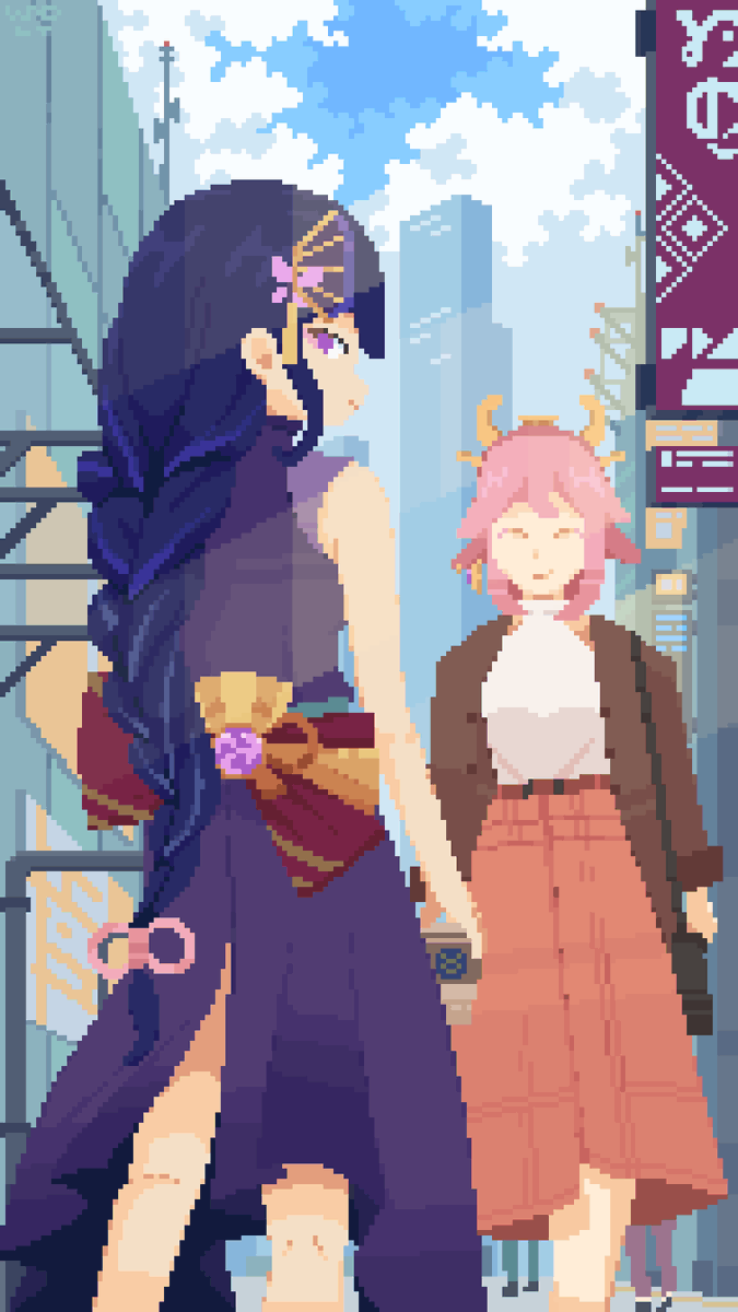 Ei and Yae's city outing🛍️ #pixelart #GenshinImpact #ドット絵
