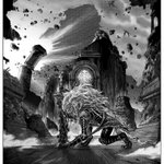 Drawing my favorite shot from the ER trailer in Miura's style. #FANART #eldenring #DarkSouls #bloodborne. .