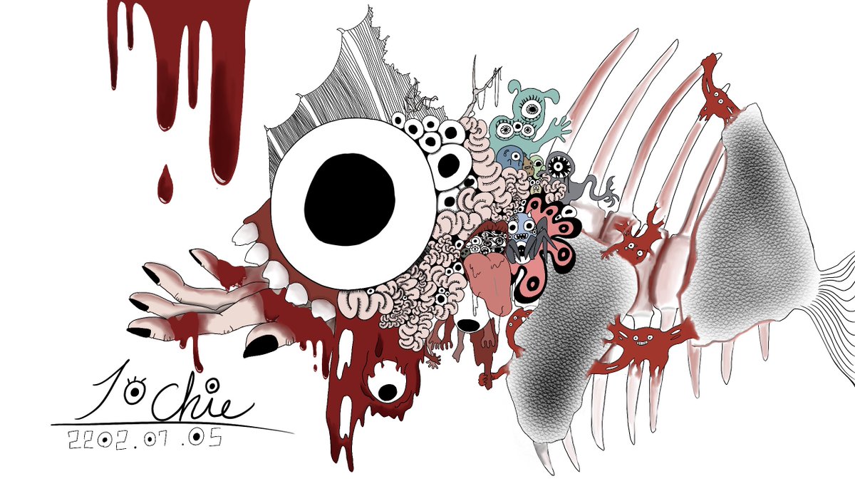 デジタルは楽でええなぁ でもグロ絵はアナログがやはり良い 色塗ったら変に感じるとこもある #イラスト #お絵かき #イラスト練習中 #デジタル