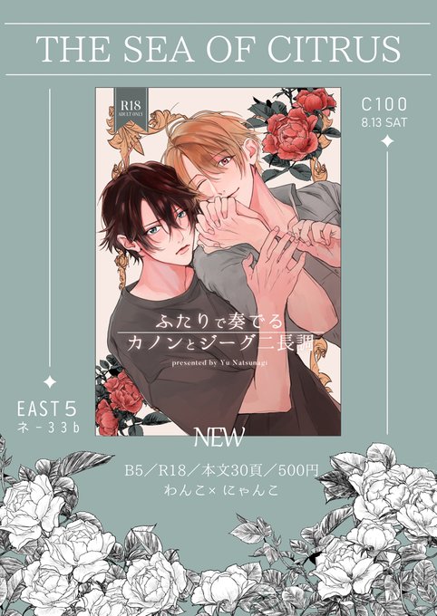🍋あなたのサークル「シトラスの海」は、コミックマーケット100で「土曜日東地区 "ネ " 33b」に配置されました! C100ーーーーー❣️❣️ これは作ってあった暫定表紙ラフ…🌴 🐶🐱のはぴはぴいちゃらぶえっち本が出る予定♡♡♡ webcatalog.circle.ms/Perma/Circle/1… #C100WebCatalog