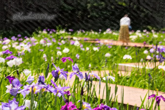 花菖蒲畑を進む子供 #水彩 #絵描きさんと繋がりたい #watercolor #painting