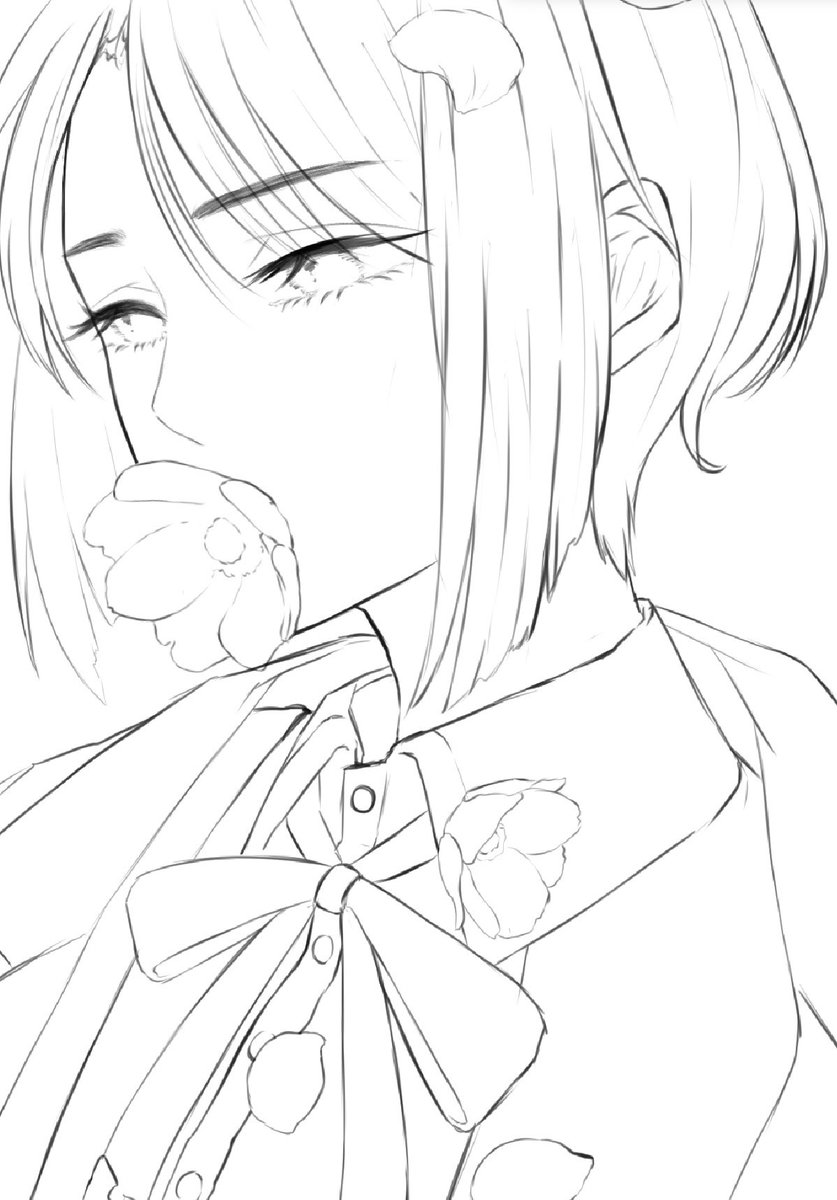 #このタグを見た人はラフ画とその完成絵を見せる 松井のやつはこんなふうに描いてました。 2枚目の線画は良かったら塗り絵してください