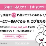 621 289 ⚪️ウーとワープレゼント企画⚫️ \フォロー& RT キャンペーン/ 抽選で15名様に『ウーとワー』 ぬいぐるみ&カプセルガチャ (ランダム1つ)をプレゼント🎁 📌応募方法 1️⃣@woo_and_wah をフォロー 2️⃣この投稿をリツイート ※利用規約を必ずご確認ください #ウーとワー #WOWOW #リツイート 23/02/15 10:00