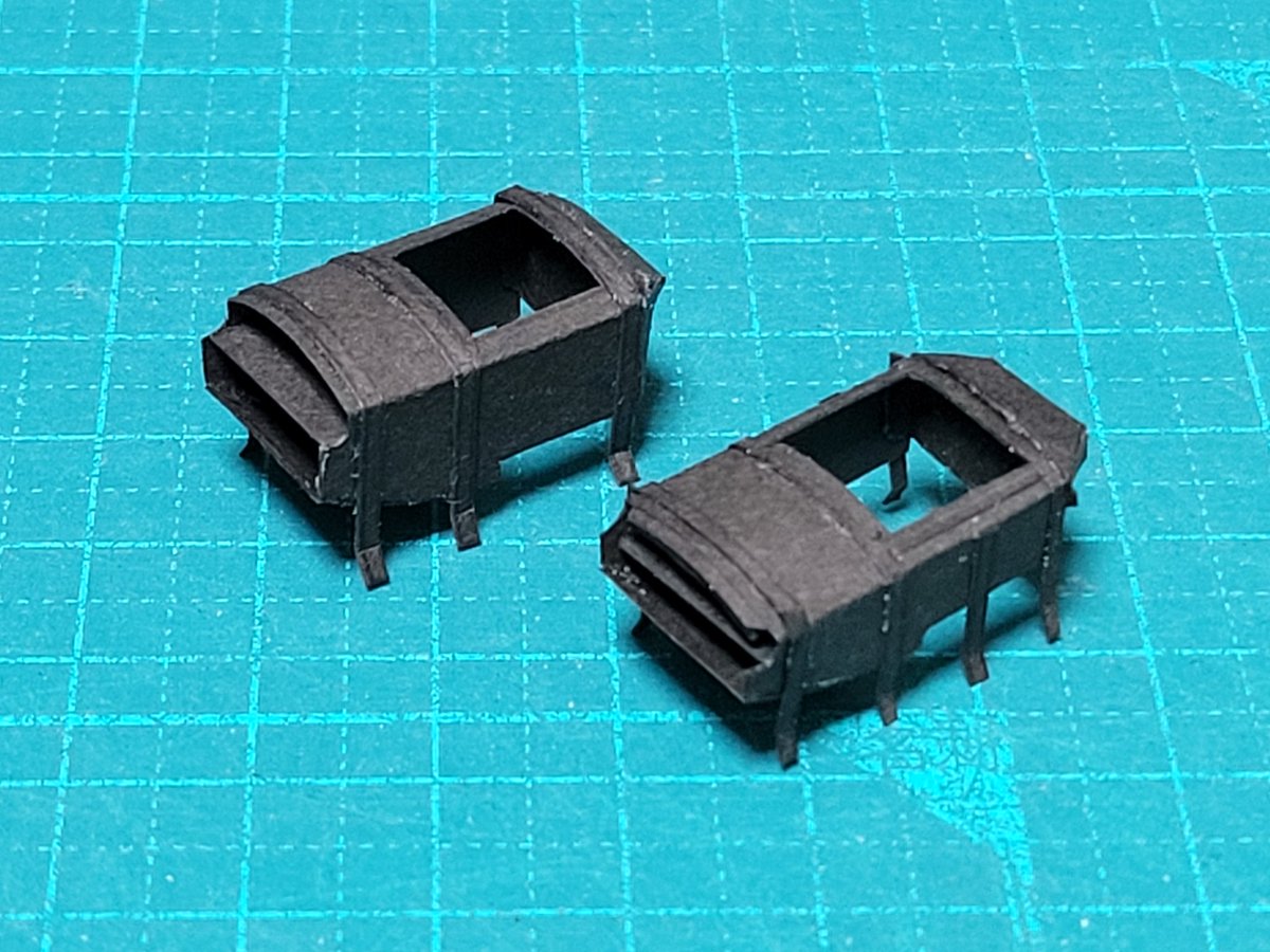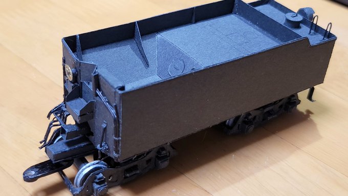 3 14 C62製造中、その29 炭水車の背面、底面を作成。 背面のランプはレジンで作成。結構いい感じ。 底面のブレーキシリンダは配線がイマイチ。実機ぽく銅線で配線してみたけどなんか変。色が浮いてる… 炭水車自体はこれで完成。あとは機関車との連結を調整すれば完成かな。 モウチョット #ペーパークラフト 23/06/10 01:53