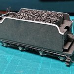 0 10 D51製造中、その13 炭水車完成。細かい配管や暖房管ぽいものを追加。 あと頑張って石炭ぽいものも作ってみた。(紙3枚貼り合わせて1mm角に切り出す) これ以上はいいかな…次回で完成。 #ペーパークラフト 21/12/26 22:17